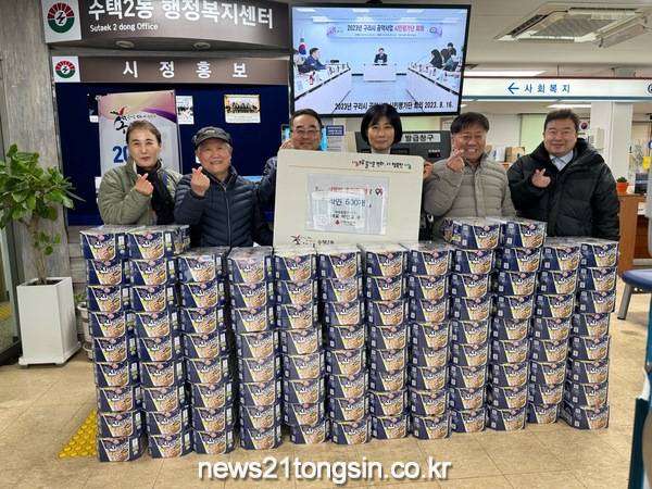 ▲  사진=구리시청구리시 수택2동 행정복지센터는 지난 17일 대성종합관리㈜로부터 취약계층을 위한 라면 600개를 후원받았다.