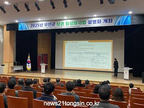[뉴스21통신 박찬웅기자] 전남 무안군(군수 김산)은 남악·오룡시장 상인회를 대상으로 지난 24일 남악복합주민센터에서 2025년 상권 활성화 공모사업 설명회를 개최했다.
