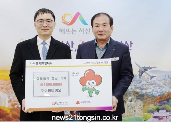 김일환 서산시 복지문화국장은 “서산시를 통해 어려운 이웃을 위한 나눔을 실천해주셔서 감사하다”며 “이번 희망나눔 캠페인 슬로건처럼 기부로 이룸바이오와 서산시가 가치있게 되어가길 기원한다”고 말했다.