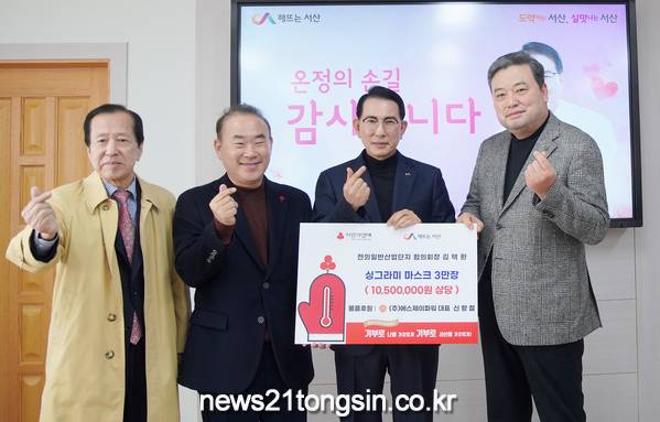 충남 서산시는 30일 김택환 전의일반산업단지협의회장이 서산시에 어려운 이웃을 위한 보건용 마스크 3만 장(1,050만 원 상당)을 기부했다고 밝혔다.