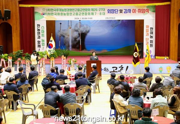 [뉴스21통신 박찬웅기자] 고흥군(군수 공영민)은 30일 고흥군민회관에서 농업경영인 회원과 내빈 등 150여 명이 참석한 가운데 (사)한국후계농업경영인 고흥군연합회(이하 한농연)와 (사)한국여성농업인 고흥군연합회(이하 한여농) 회장단 및 감사 이·취임식을 합동으로 개최했다고 밝혔다.