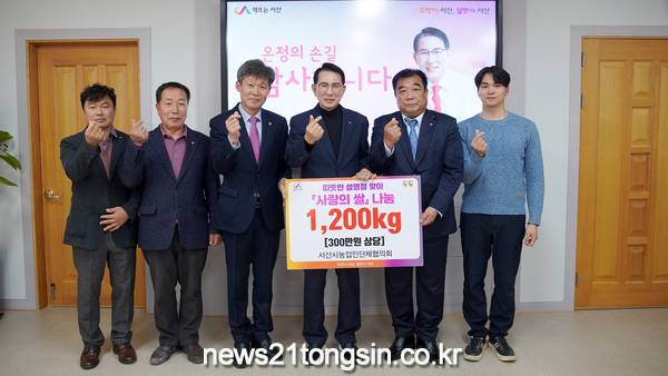 충남 서산시는 31일 서산시농업인단체협의회가 쌀 1,200kg(10kg 120포, 300만 원 상당)을 서산시에 기탁했다고 밝혔다.