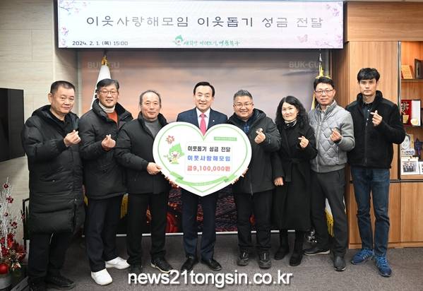 (뉴스21통신/권혁진기자) = 매년 겨울 군고구마를 팔아 이웃돕기에 나서고 있는 이웃사랑해모임(상임회장 이상근)이 1일 울산 북구청을 찾아 올겨울 군고구마 판매 수익금 910만원을 이웃돕기 성금으로 전달했다.