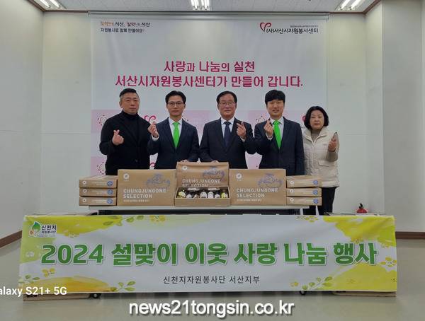 같은 날 신천지자원봉사단 서산지부(지부장 구성회)에서도 “2024 설맞이 이웃 사랑 나눔”으로 생필품 12세트를 센터에 전달했다.