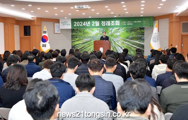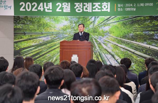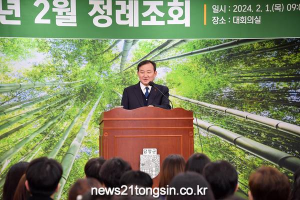 [뉴스21통신 김길용기자] 담양군은 지난 1일 군청 대회의실에서 공직자 200여 명이 참석한 가운데 2월 정례조회를 개최했다. 이날 정례조회는 2023년 담양군 공직자 동호회 활동 사례 발표와 함께 진행됐다.