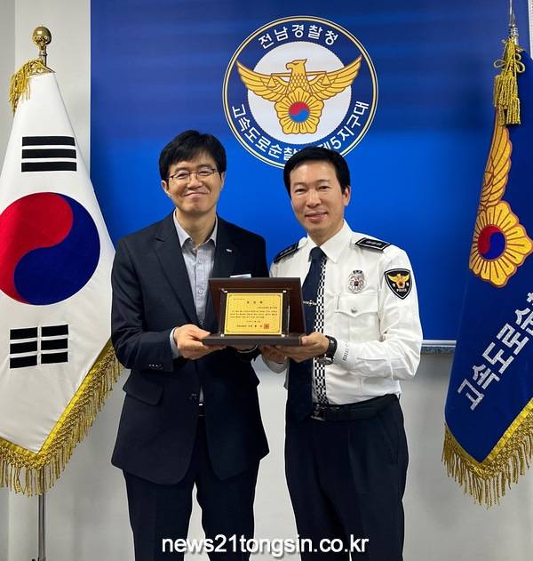 [뉴스21통신 박찬웅기자] 전남도경찰청 고속도로순찰대 제5지구대(대장 안병노)는 2023년 고속도로 교통사고 예방 전국 최우수 지구대로 선정되어 한국도로공사장 표창을 수상했다.