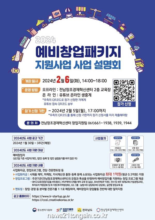 전남도는 6일 오후 2시 전남창조경제혁신센터에서 예비창업패키지, 7일 오후 2시 순천대학교에서 초기창업패키지의 사업설명회를 진행한다.