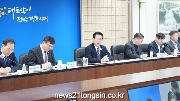 김영록 지사는 이날 오전 도청 서재필실에서 실국장 정책회의를 주재하며 “최근 진행 중인 중앙부처 업무보고와 주제별 민생토론회에서 제시되는 국정 운영 방향을 잘 살펴 실국별로 관련 신규사업 발굴 등 대응계획을 잘 세우라”고 지시했다.