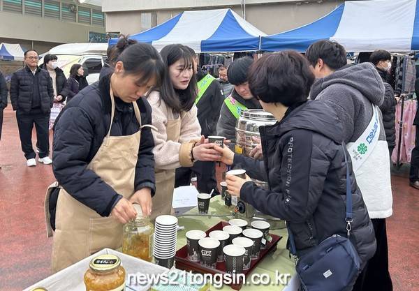 [뉴스21통신 박찬웅기자] 보성군은 보성군4-H연합회(회장: 박기훈)가 지난 2일 설 명절을 앞두고 녹차골보성향토시장에서 지역시장의 소상공인과 방문객들을 위한 차 나눔 봉사를 추진했다고 밝혔다.