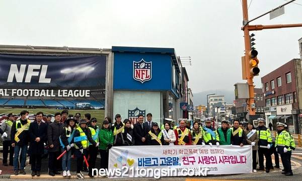 ▲ 동문2동 청소년지도협의회, 새학기 민관합동 캠페인 실시동문2동 청소년지도협의회(회장 지규숙)에서는 3월 12일 오전 7시 30분 서산초등학교 스쿨존 일대 에서 각 기관 · 단체 약 40명이 참석한 가운데 학교폭력 예방 및 교통안전 캠페인을 실시했다.