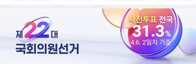 제 22대 총선 사전 투표 둘째 날인 6일 최종 사전 투표율이 31.28%로 집계됐다고 중앙선거관리위원회가 밝혔다.