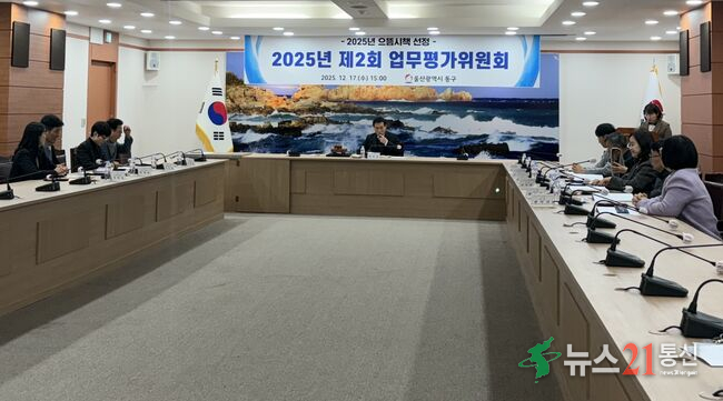 [뉴스21 통신=박정임기자 ]울산 동구, ‘2025년 으뜸시책’ 선정…관광·청년·돌봄 분야 두각울산 동구 2025년 으뜸 시책 선정◈ 울산 동구는 지난 12월 17일 오후 3시 구청 상황실에서 외부 전문가 등으로 구성된 업무평가 위원회를 개최하고 ‘2025년 으뜸시책’을 선정했다. 동구는 한 해 동안 역점적으로 추진하고 자...