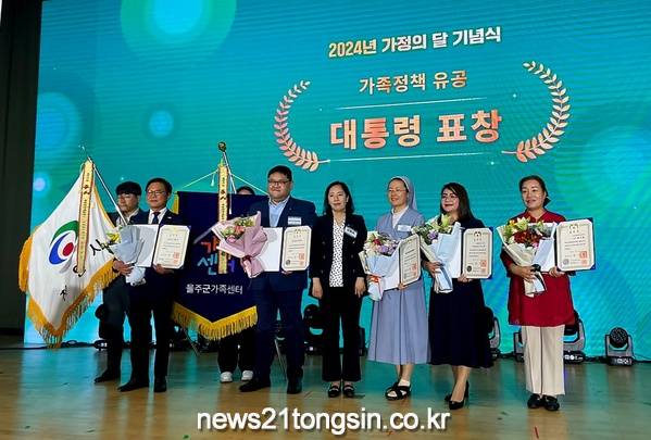 (뉴스21통신/우정석기자) = 울주군가족센터(센터장 임대완)가 8일 서울지방조달청 대강당에서 열린 ‘2024년 가족정책 유공 정부포상 시상식’에서 대통령 표창을 수상했다.