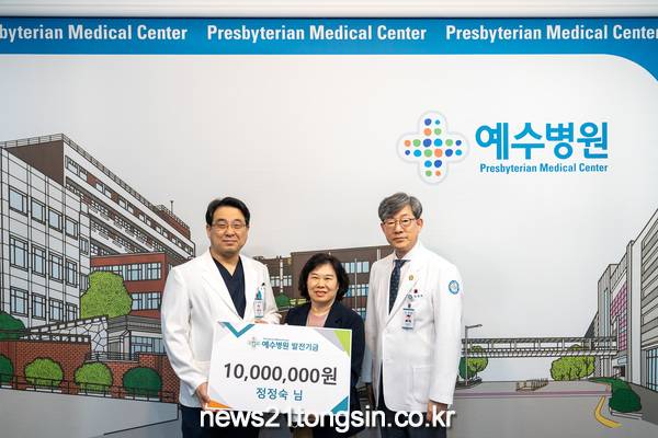 ▲ 전주예수병원= 콜센터 정정숙 팀장, 발전기금 1천만 원 기탁전북특별자치도 전주예수병원(신충식 병원장)은 정정숙 콜센터 팀장이 예수병원에 발전기금 1천만 원을 기탁했다고 10일 밝혔다.