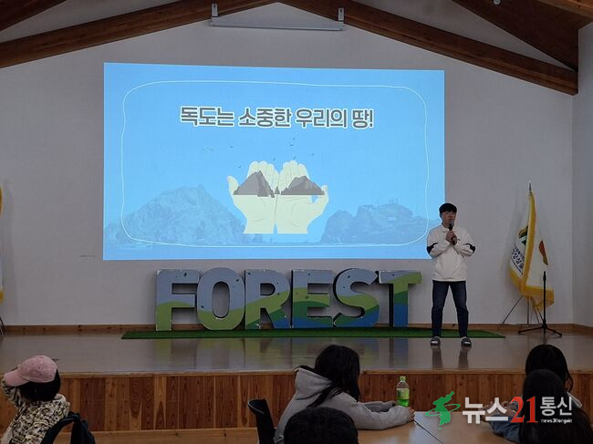 산림복지시설에서 만나는 ‘우리 땅, 독도!’ - 한국산림복지진흥원, 독도의 날 기념 청소년 대상 특별프로그램 운영 ‘독도의 날(10월 25일)’을 맞아 전국의 산림복지시설에서 청소년을 위한 특별프로그램이 운영된다. 국립장성숲체원에서 진행된 청소년 대상 ‘우리땅 독도!’ 프로그램 사진. 한국산림복지진흥원 제공..