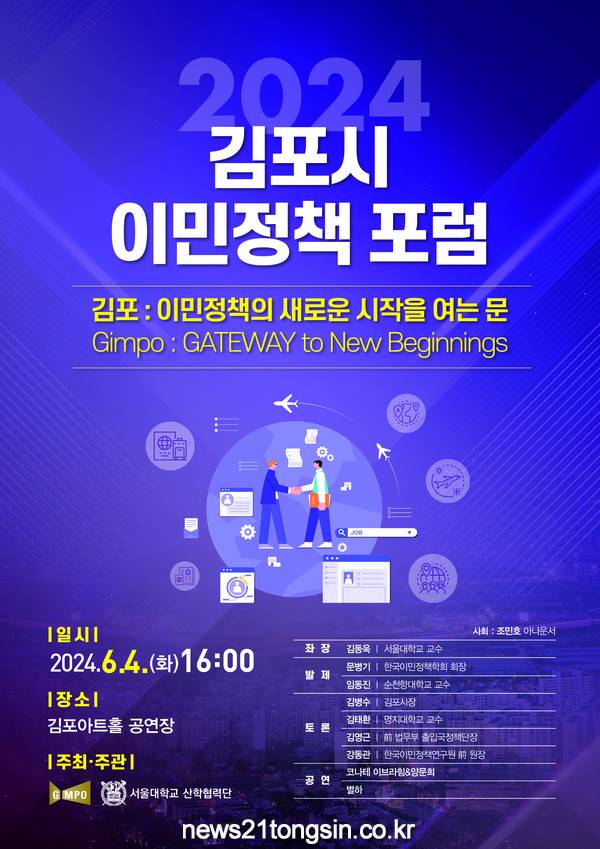 정부 조직 분야의 손꼽히는 전문가인 김동욱 교수를 좌장으로 서울대학교 산학협력단과 김포시는 오는 4일 ‘김포: 새로운 시작을 여는 문’이라는 주제로 ‘이민정책 포럼 2024’를 개최할 예정이다. 대한민국 이민정책전문가들과 전국다문화도시회장도시인 김포시가 함께 머리를 맞대 이민청 설립의 당위성에 대해 논하는 공론화의 장이 개최되는 것에 관계자들은 주목하고 있다.