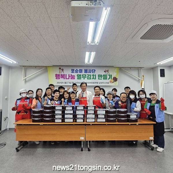 선미숙 단장은 “열무김치를 만들어 어려운 이웃들의 밥상에 함께 나눌 수 있어 특별한 보람을 느낀다”라며 “앞으로도 포순이 봉사단을 통해 지속적인 나눔을 실천하겠다”라고 밝혔다.
