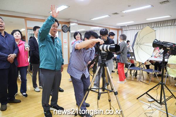 이날 어르신들은 용모를 다듬은 후 전문 사진사 설명에 따라 사진 촬영을 이어갔으며 박강수 구청장 또한 어르신들의 사진 촬영을 도왔다.