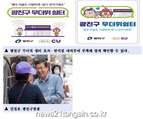 광진구(구청장 김경호)가 여름철 폭염 대비 구민을 안전하게 보호하기 위해 CU편의점 15개소를 무더위 쉼터로 운영한다.