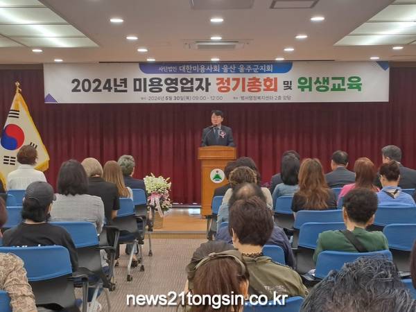 (뉴스21통신/우정석기자) = (사)대한미용사회 울산광역시 울주군지회가 30일 범서읍 행정복지센터 중회의실에서 영업주 130여명이 참석한 가운데 2024년 정기총회 및 미용업주 위생교육을 실시했다.