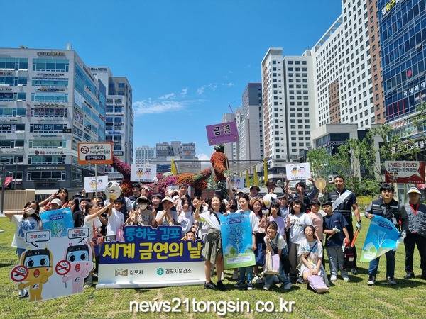 김포시(시장 김병수)는 세계 금연의 날을 맞이해 지난 31일, 구래동 일대에서 금연 캠페인을 실시했다.