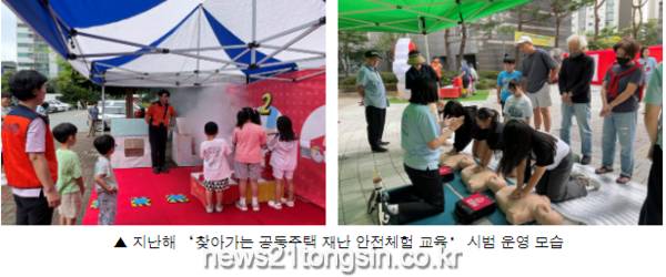 해당 교육은 사전 수요조사를 통해 선정된 10개(상하반기 각 5개) 공동주택을 대상으로 하며, 전문가가 직접 방문하여 화재, 각종 재난 등 일상생활에서 발생할 수 있는 응급 상황에 바르게 대처할 수 있도록 체험형 재난교육을 실시한다.