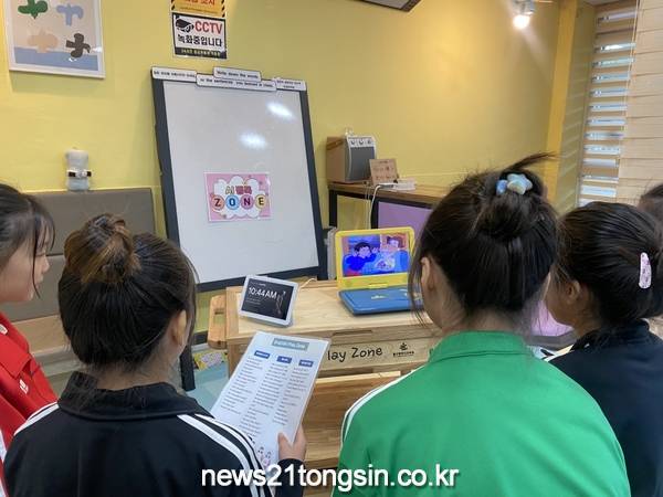 학생들은 교육용 디지털 비디오 디스크와 어학기, 보드게임, 알파벳 교구 등을 활용해 많이 듣고, 많이 읽으며 실생활에서 영어를 이해할 수 있게 된다.