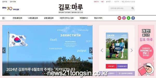 개편 후 시민들에게 더 가까이 다가간 김포시 시정매거진 ‘김포마루’가 환경의 달 6월을 맞아 전자책으로만 발행된다. 올해 2월부터 기존 신문에서 잡지 매거진 형식으로 판형을 전면 개편하고 지면을 20면에서 52면으로 증면하는 등 대대적인 변화로 효율성 있는 실용 소통을 지향해 온 김포마루의 이번 전자책 발행은 환경보호와 자원절약에 앞장서고 시민 구독 편의성을 높이고자 한 변화의 일환이다.