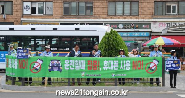 이번 캠페인은 나용자 교통봉사대장을 비롯한 각 지구대 대장 및 부장 30여 명이 참여한 가운데, 도로교통법에 의해 금지되고 있는 ‘주행 중 휴대폰 사용’이 얼마나 위험한 행동인지 경각심을 주기 위해 마련됐다.