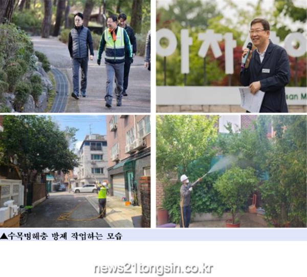 구는 3월부터 직접 방제하기 어려운 구민들을 위해 ‘생활권 수목 병해충 방제 지원사업’을 시행하고 있다. 적기 방제를 통해 병해충의 확산을 방지하고 쾌적한 녹지환경을 조성하고 있으며, 지난해는 66개소에 교목 1,700여 주, 관목 2,800제곱미터를 방제했다.