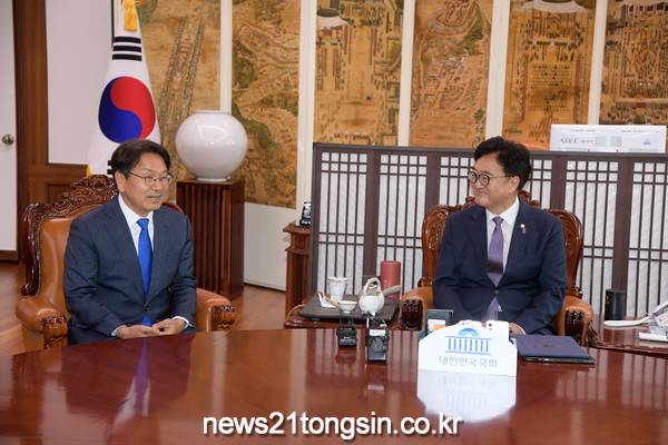 ▲   우원식 국회의장 예방 강기정 광주광역시장이 5·18정신 헌법전문 수록을 위해 초당적 국회 협력에 나섰다. 강 시장은 또 제22대 국회 개원에 발맞춰 더불어민주당, 국민의힘, 조국혁신당, 개혁신당 등 여야 지도부를 잇따라 만나 법률 제·개정 및 국비예산 확보를 향한 ‘광폭행보’에 속도를 내고 있다.