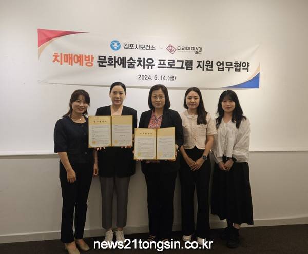 김포시보건소(소장 최문갑)는 14일 더리미미술관(관장 유리)과 치매예방을 위한 문화예술치유 프로그램 지원 업무협약식을 가졌다.