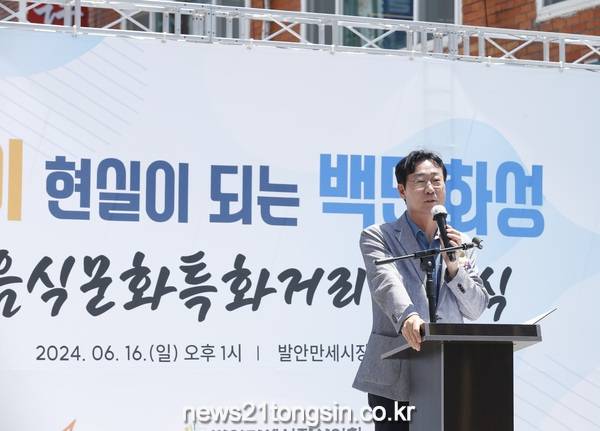 화성시(시장 정명근)가 지난 16일 향남읍 발안만세시장의 음식문화특화거리 지정을 기념해 ‘음식문화특화거리 선포식’을 개최했다.