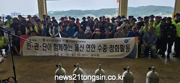 (뉴스21통신/우정석기자) = 울산해양경찰서(서장 정욱한)는 S-OIL, 한국해양구조협회 울산지부(협회장 구춘근)와 함께 6월 15일 오전, 울산 북구 정자항 일원에서 “민·관·단 합동 연안 정화활동”을 실시했다고 밝혔다.