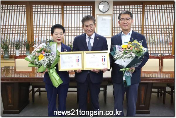 ▲  정읍시의회 = 황혜숙, 이복형 의원 지방의정봉사상 수상정읍시의회(의장 고경윤)는 황혜숙 의원과 이복형 의원이 지난 18일 전북특별자치도시군의회의장협의회로부터 지방의정봉사상을 수상했다고 19일 밝혔다.