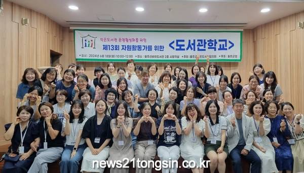 (뉴스21통신/우정석기자) = 울주군 작은도서관협의회 주최 울주군청 후원으로 "제13회 자원활동가를 위한 도서관 학교"를 2024년 6월18일(화) 오전10시 울주선바위도서관 2층 시청각실에서 관계자외 자원봉사자 80여명이 참석하여 작은도서관 활성화와 지역사회 독서 문화 확산에 대한 의견을 나누었다.