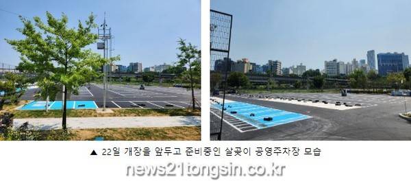 서울 성동구(구청장 정원오)가 살곶이 공영주차장을 기존 102면에서 203면으로 대폭 확장 조성하여 살곶이 물놀이장이 개장하는 이달 22일부터 운영을 시작한다.