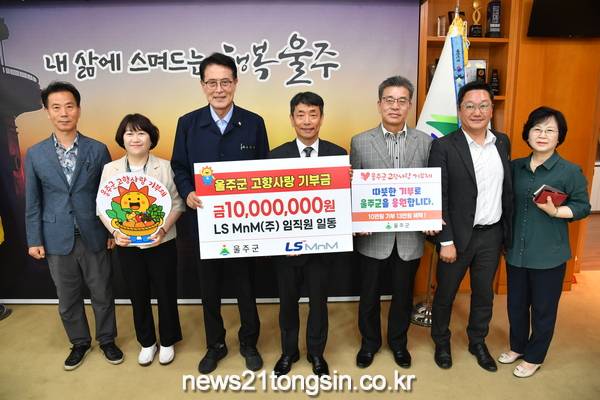 (뉴스21통신/우정석기자) = LS MnM(주)이 20일 울주군청을 방문해 지역 소외계층 지원과 지역경제 활성화를 위해 임직원들이 자발적으로 모금한 고향사랑기부금 1천만원을 전달했다.
