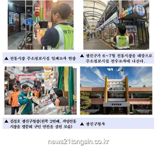 김경호 광진구청장은 “화재나 범죄 같은 위급상황 시 현장을 빠르게 찾을 수 있도록 일제조사를 추진했다”라며, “많은 구민이 전통시장을 안전하게 이용할 수 있도록 이번 정비 작업에 철저를 기하겠다”라고 말했다.