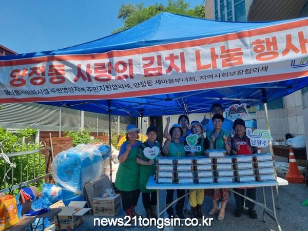남양주시 양정동(동장 김정애)은 26일 지역의 어려운 이웃들을 위해 ‘정 듬뿍 김치 나눔 행사’를 진행했다.