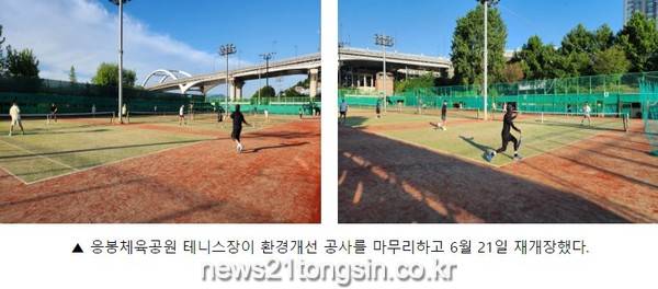 서울 성동구(구청장 정원오)는 응봉체육공원 테니스장(응봉동 237-1) 환경개선 공사를 마무리하고 지난 21일 재개장에 들어갔다.