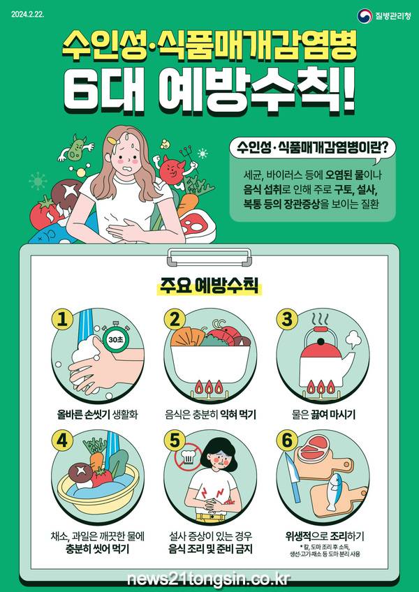 수인성·식품매개 감염병이란 세균, 바이러스 등에 오염된 물이나 음식 섭취로 인해 주로 구토, 설사, 복통 등의 장관증상을 보이는 질환으로, 콜레라, 장티푸스, 살모넬라감염증 등이 있다.