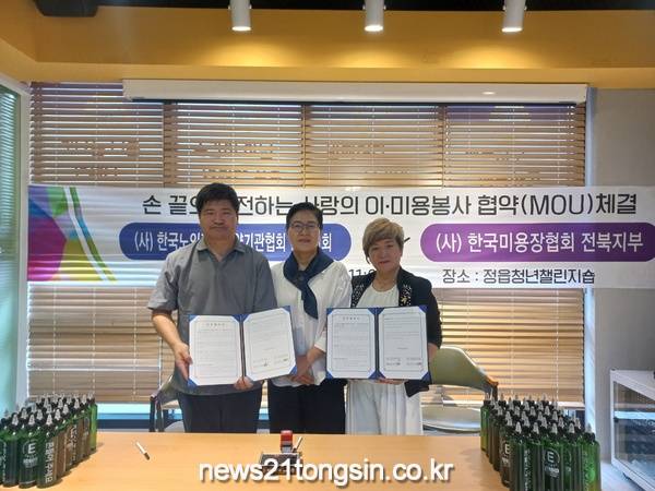 ▲  (사)한국미용장협회 전북지회= 이·미용봉사 업무협약 체결