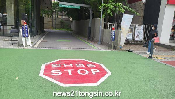 송파구(구청장 서강석)가 관내 모든 드라이브스루 매장 진입로 노면에 ‘일단멈춤’ 표시를 도장하여 걷기 편하고 안전한 보행환경 조성에 나섰다.