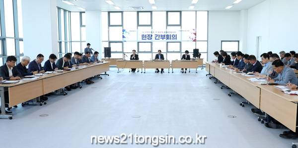 이 시장은 서두에서“재산관리과 사무실이 백석 업무빌딩으로 이전하게 되어 이곳에서 간부회의를 개최하게 됐다”라며, “앞으로도 백석 업무빌딩에서 회의, 세미나 장소로 적극 활용해 주기 바란다”고 전했다.