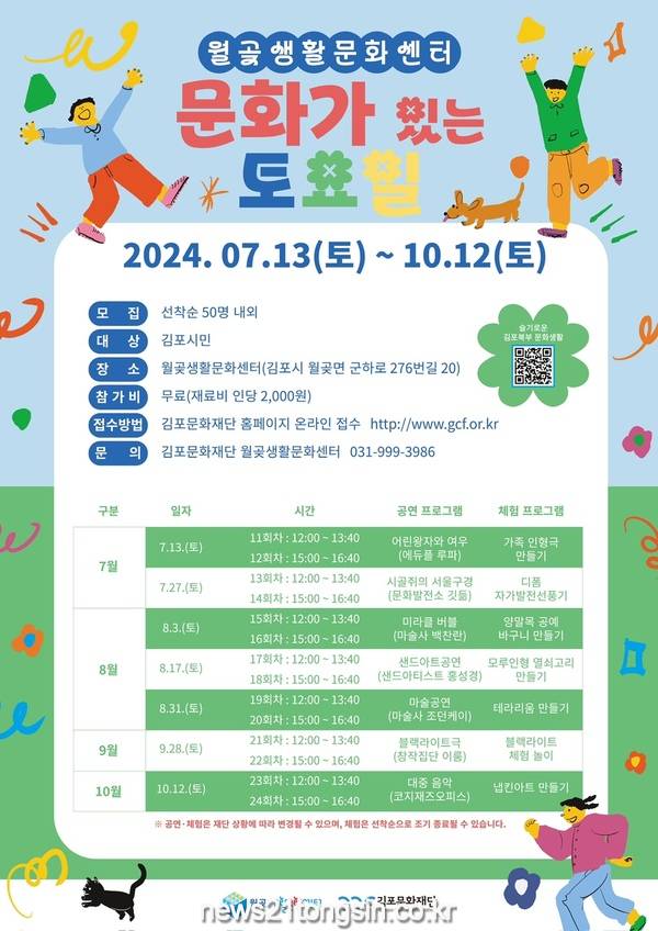 (재)김포문화재단(대표이사 이계현)은 7월 13일부터 10월 12일까지 월곶생활문화센터 대표 문화예술행사 <</span>문화가 있는 토요일>의 하반기 운영을 추진한다.