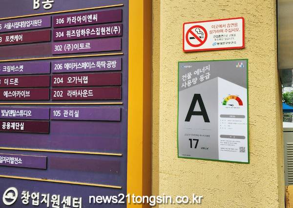 서울 동대문구(구청장 이필형)는 공공건물 온실가스 배출량 관리를 위해, 연면적 1,000㎡ 이상 공공건물 22개소에 ‘건물 에너지 사용량 등급표’를 부착한다고 18일 밝혔다.