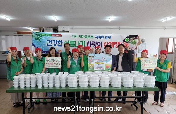 (뉴스21통신) 황태원기자 = 대구 남구 봉덕1동 행정복지센터는 지난 22일, 봉덕1동 새마을부녀회에서 ‘복날 맞이 삼계탕 나눔 행사’를 추진했다고 밝혔다. 이번 행사는 새마을부녀회 회원들이 이른 아침부터 삼계탕을 직접 조리하고 포장해, 지역 내 저소득 주민 80세대에 전달했다.