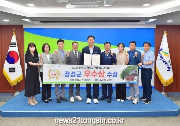 장성군이 8일 서울 엘타워에서 열린 고용노동부 주관 ‘전국 지방자치단체 일자리대상’ 시상식에서 지역일자리 목표공시제 부문 우수상을 수상했다.