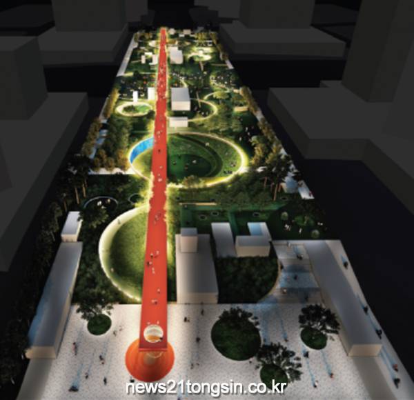 이번에 선정된 공모작품안을 살펴보면, ▲넓은 광장 중심의 공원을 조성하고 ▲도심이벤트를 생성하는 ‘문화플랫폼 런웨이350’와 ▲원형폭포와 놀이우물로 구성되는 ‘정우물광장’ 등의 특화시설물이 설계된다는 특징이 있다.